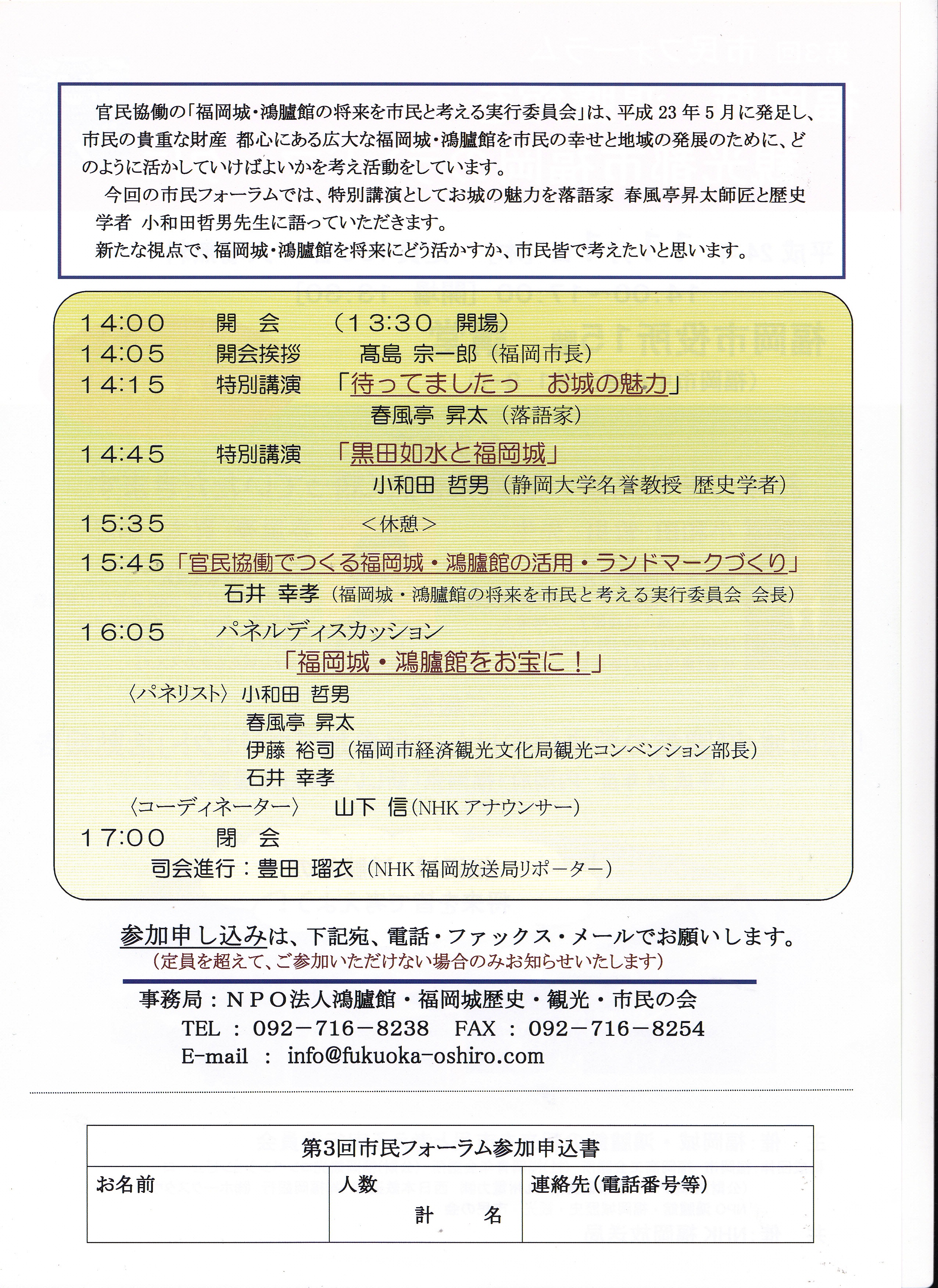 11月01日 第3回「 市民フォーラム」 開催!(募集終了)